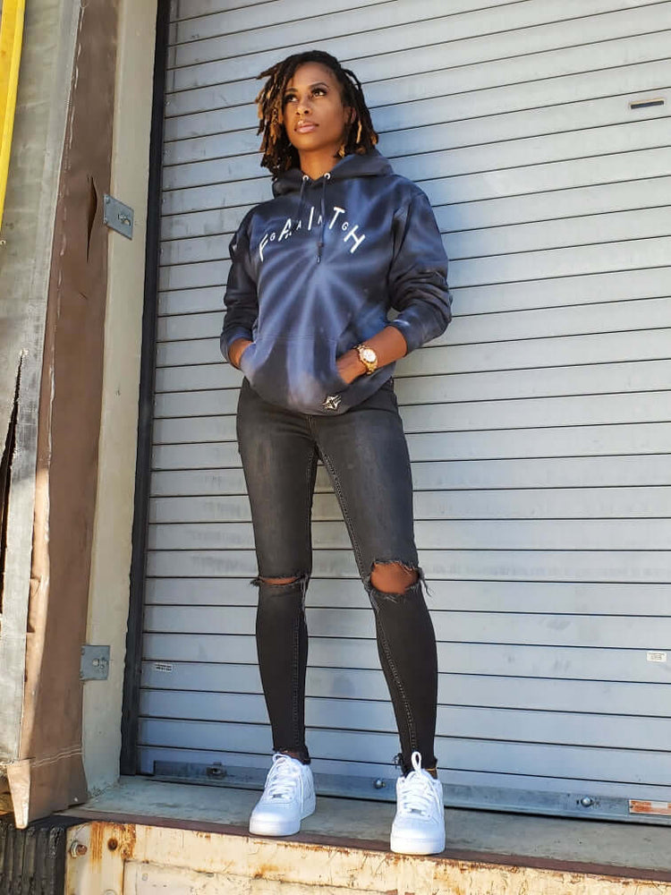 Sudadera con capucha negra tie-dye arqueada Faith Gang® (unisex)